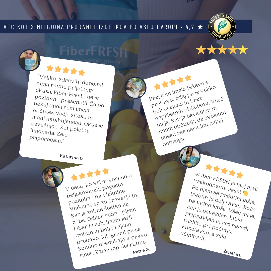 Če FiberFresh ne izpolni pričakovanj, ti v 30 dneh vrnemo denar. Brez vprašanj, brez zapletov.