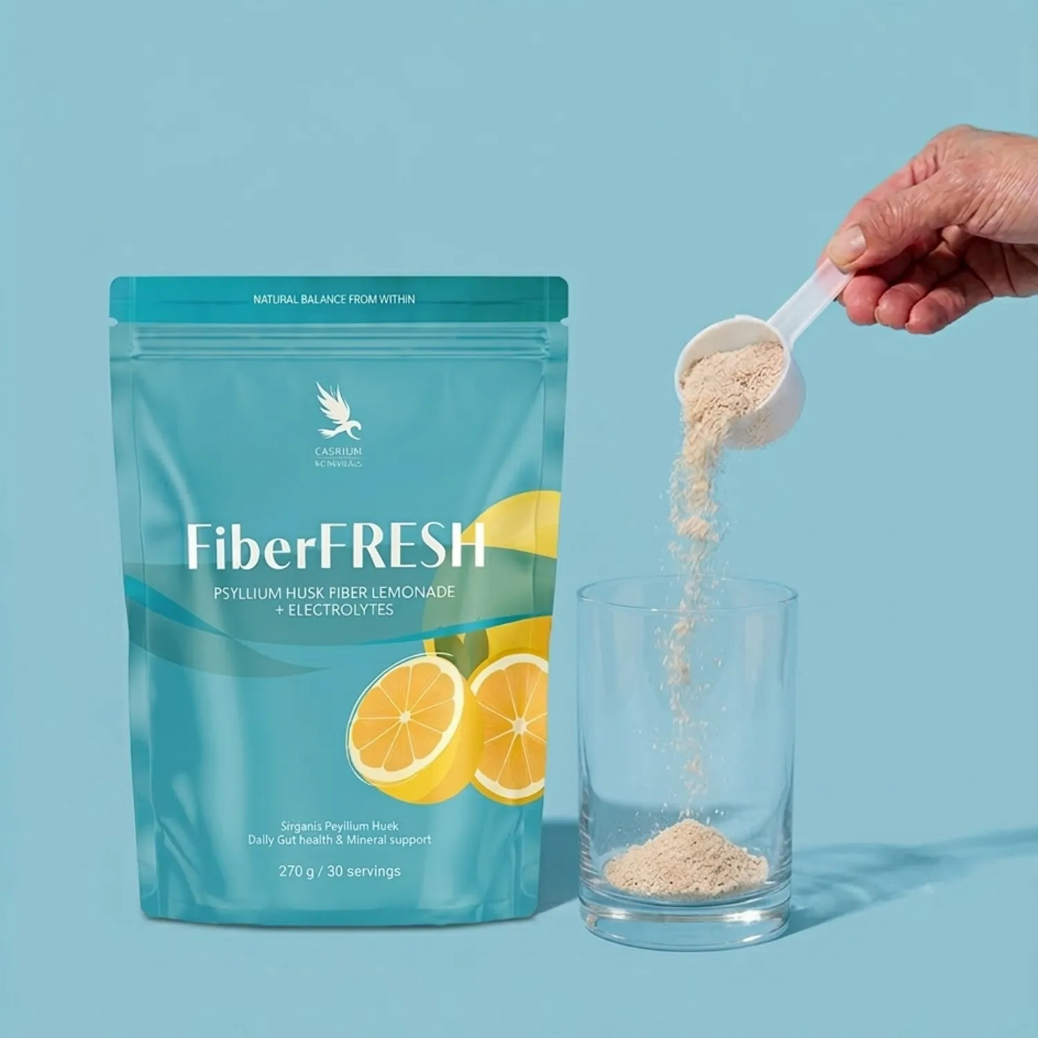 Zmešajte eno zvrhano merico (9 g) z 250 ml hladne vode. Prašek vedno najprej stresite v prazen kozarec, nato dodajte vodo in dobro premešajte. Fiber FRESH vsebuje naravne vlaknine, ki se ob stiku z vodo hitro začnejo gostiti, zato napitek popijte takoj po pripravi, saj se z vsako minuto bolj zgosti.